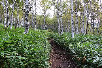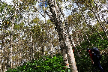 白樺林を進む