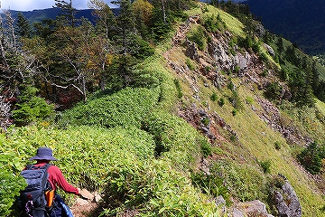 右側が切れ落ちた登山道を進む