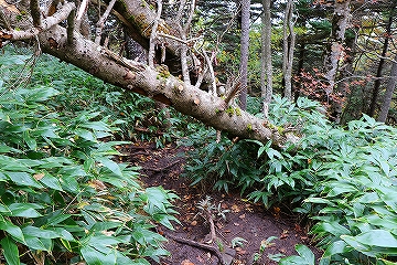 倒木が登山道を遮る