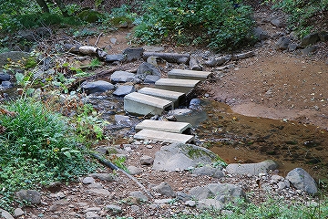 大明神沢を渡る