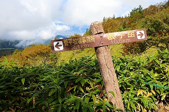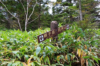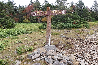 根子岳・四阿山の景色 9年振り2回目の登山です。今回は根子岳経由四阿山の周回です。天気は薄曇りで登山の合間に日が差すような空模様のため、アルプス等の眺望は残念ながら望めません。駐車場の先にはトイレが完備されています。根子岳への登山道を進むと「根子岳まで2.6Km・標高1600m」の道標があります。 登山道は歩きやすく整備されていて、9月末とはいえ、未だ高山植物が花を咲かせています。30分程で東屋に到着し、休憩を取りました。天気が良ければ北アルプス等の眺望が素晴らしい ようですが、残念ながら雲に隠れて見ることは出来ませんでした。休憩後、笹の生い茂る白樺林の中の登山道を汗をかきながら登り「根子岳0.8Km」の道標を通過し、途中休憩をとった後、更に登ると視界が少しずつ開け「根子岳0.5Km」の 道標まで来る頃、やっと風が吹き抜ける様になりました。風は肌寒さを感じさせる風でした。その後、20分程登山道を登ると根子岳山頂に到着です。5名程が周辺で休憩を取っていましたが、山頂からの眺望はありませんでした。