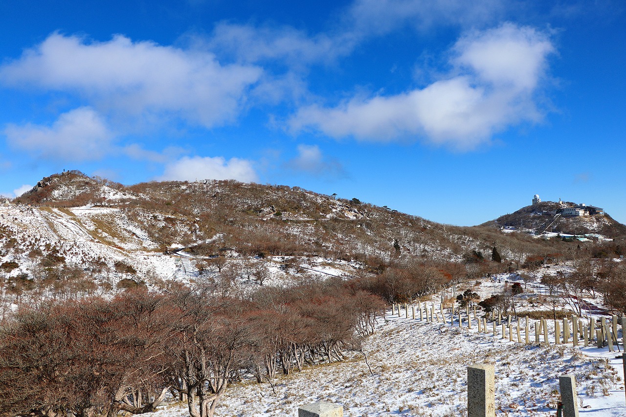 御在所岳にはネット上で良く目にする一等三角点や県境の標識が立っています。山頂から直ぐそばに望湖台がありここからは琵琶湖の一部が見られます。また少し離れますが、山頂から下ると御嶽大権現や長者池がありこの付近から見上げると山上公園一体を見渡すことができます。 山上公園は子供連れの家族や外国人環境客を初めとした大勢の人で賑わっていました。